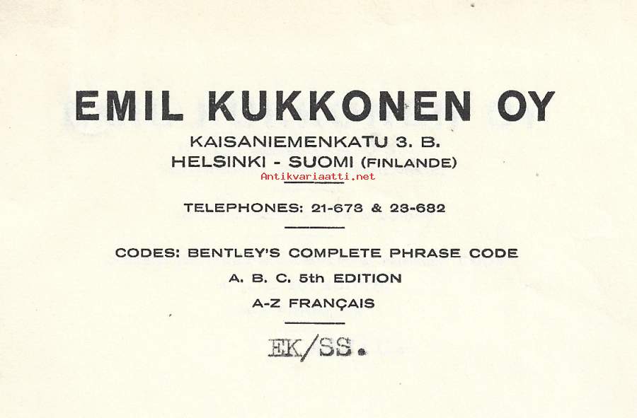 Emil Kukkonen Oy Helsinki 1931- firmalomake
