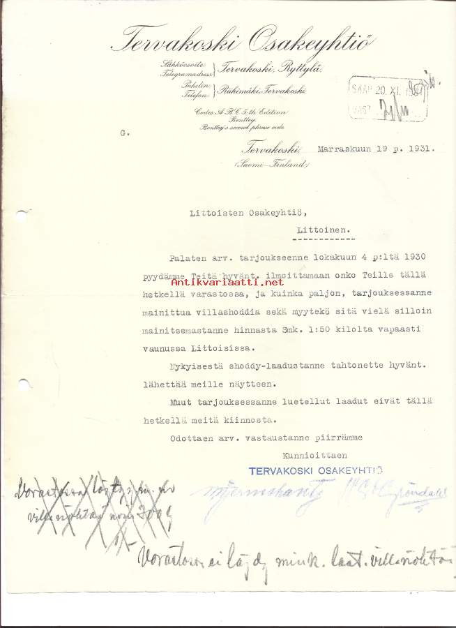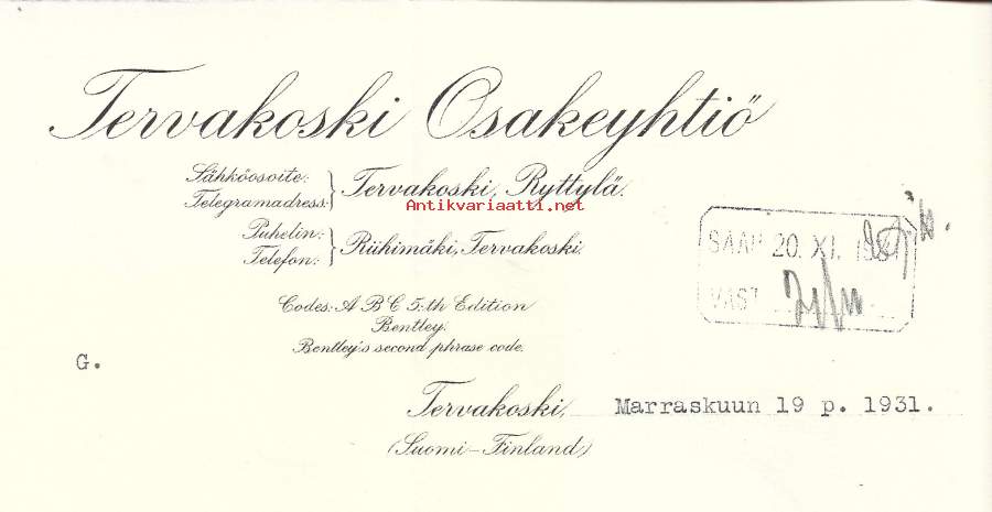 Tervakoski Oy Tervakoski 1931- firmalomake