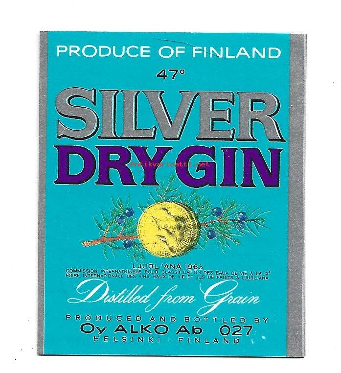 Silver Dry Gin Alko nr 027 50 ml viinaetiketti pienoispullon etiketti 55x45 mm