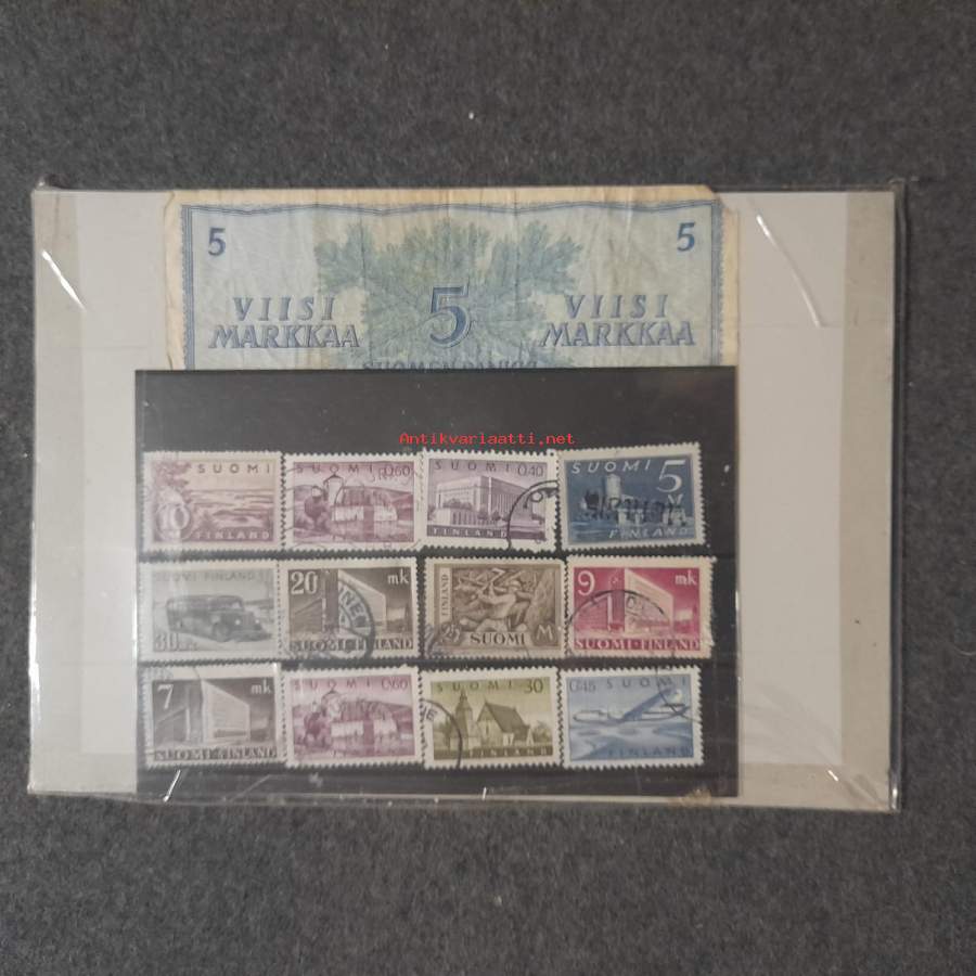 Sekalainen erä n 15 kpl - etiketti,postimerkkejä,rahaa