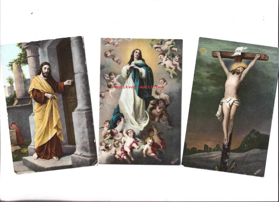 Laadukas vanha uskonnollinen postikortti kulkematon 3 kpl erä