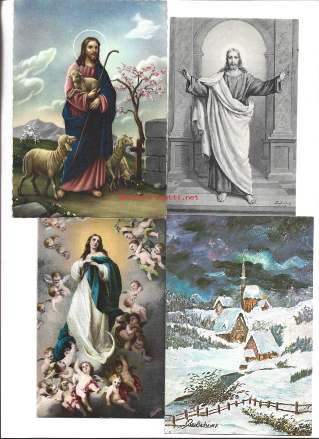 Uskonnollinen postikortti kulkematon 4 kpl erä
