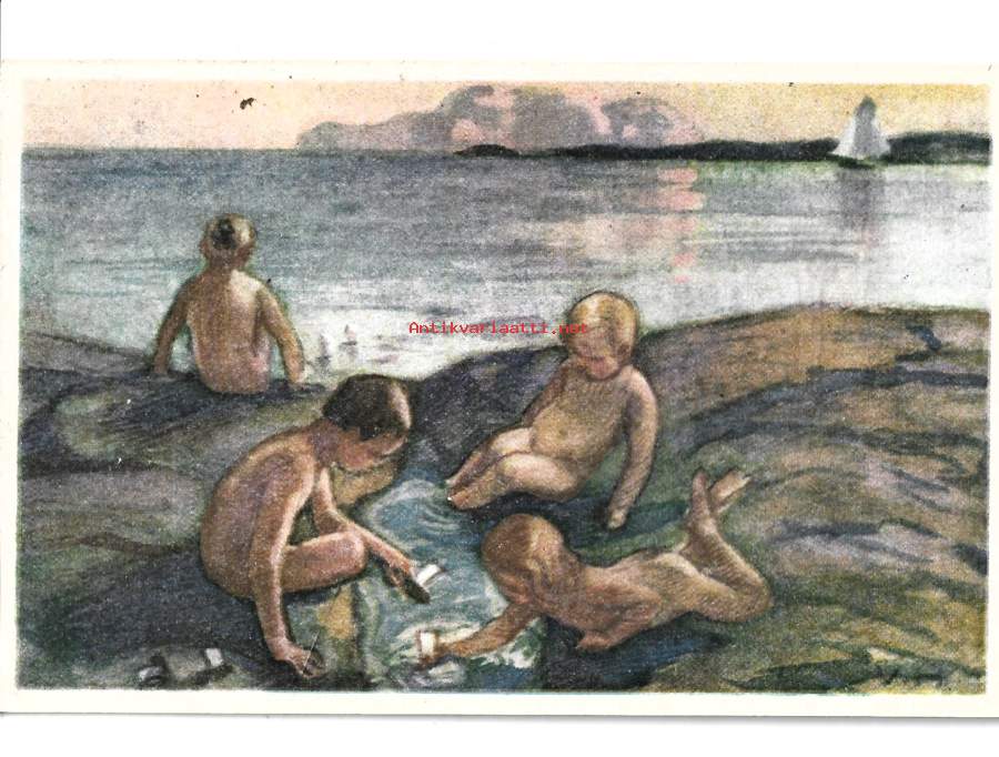 Rannalla postikortti taiteilijapostikortti kulkematon