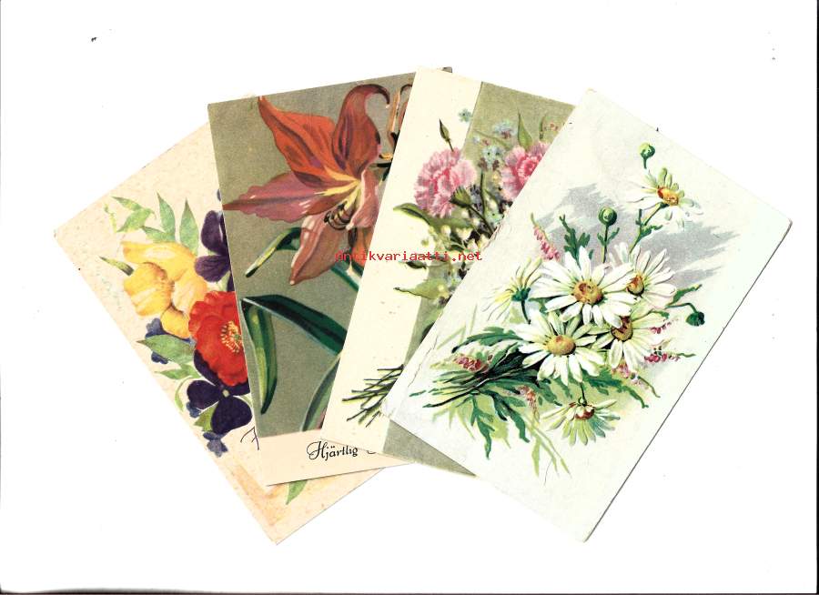 Onnittelukortteja kukkakortteja 4 kpl erä - postikortti kulkematon