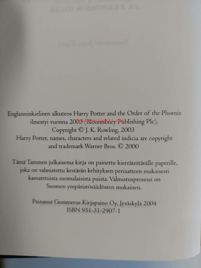 Muu(t) tekijä(t): Jaana KapariSarja: Harry Potter -sarjaAlkuteos: Harry Potter and the Order of the Phoenix1.painos