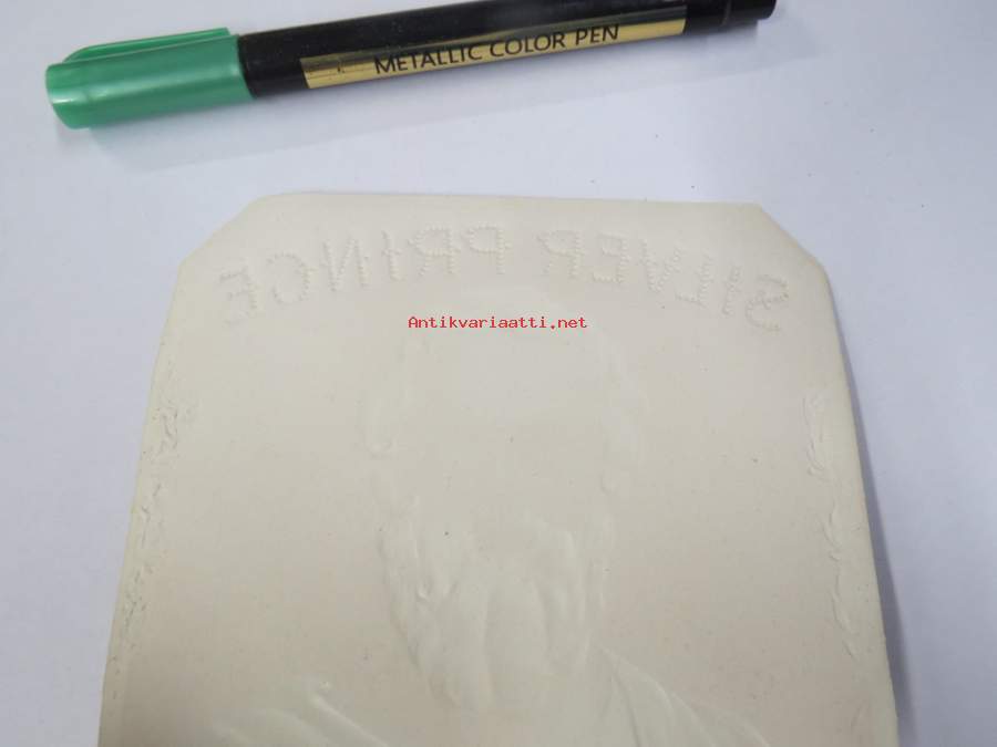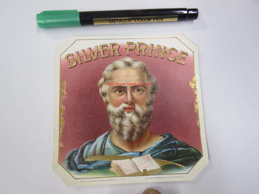 Silver Prince -sikarietiketti, huomaa kohopainatus