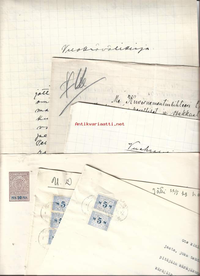 Asiakirjoja leimamerkein 3 kpl + lainakirja