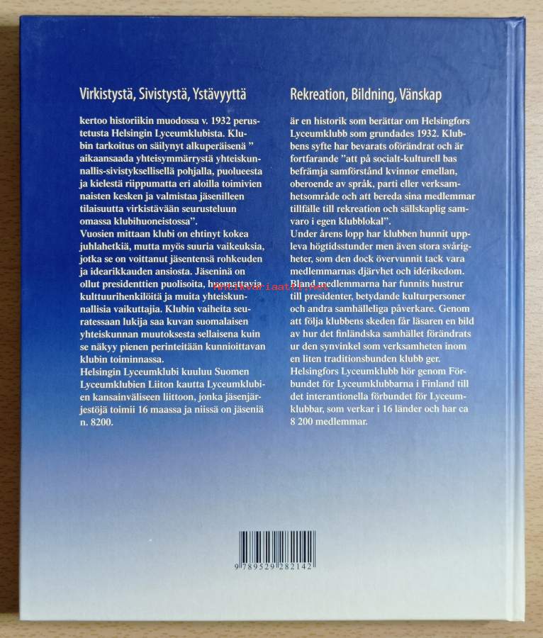 Teos kertoo v. 1932 perustetusta Helsingin Lyceumklubista. Dimensiot 25,5 ¤ 21,5 cm.Kuvitettu