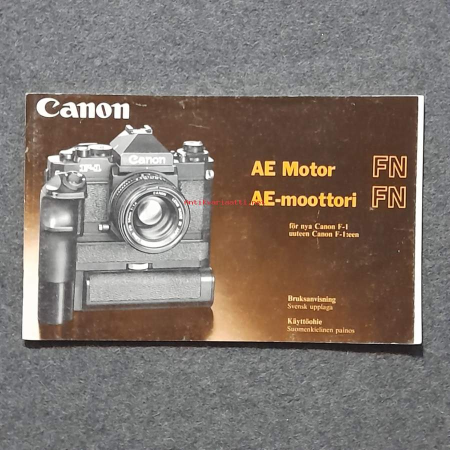 Käyttöohje; Canon AE Motor/AE-moottori FN, uuteen Canon F-1:teen, suomen- ja ruotsinkielinen painos