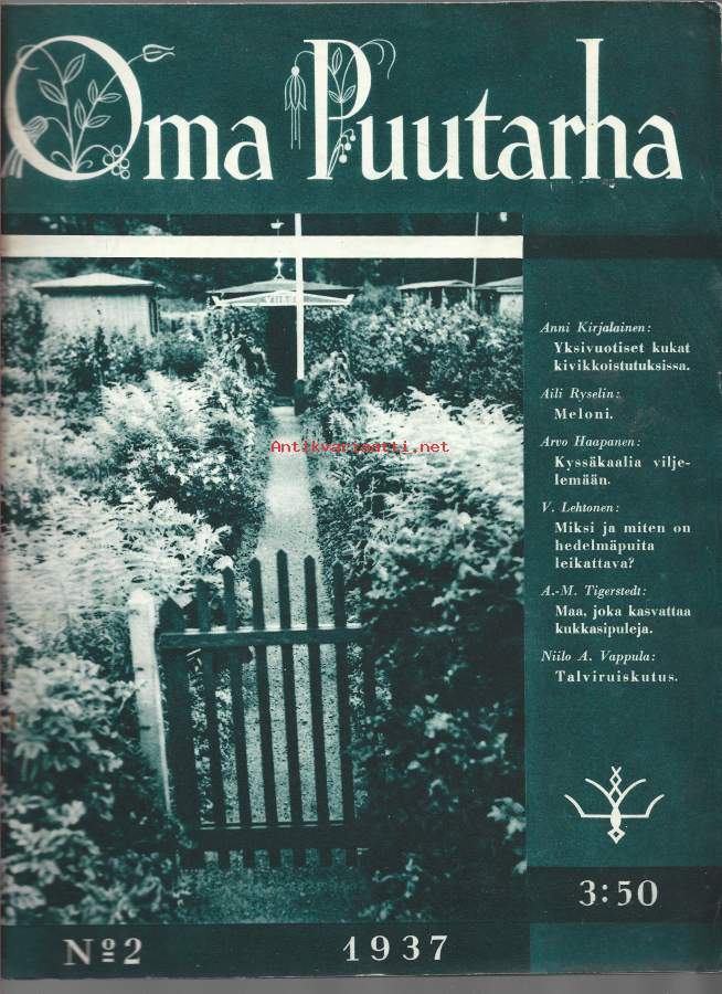 Oma Puutarha 1937 nr 2 / 1 v kukat, meloni, kysssäkaali, hedelmäpuiden leikkaus, talviruiskutus