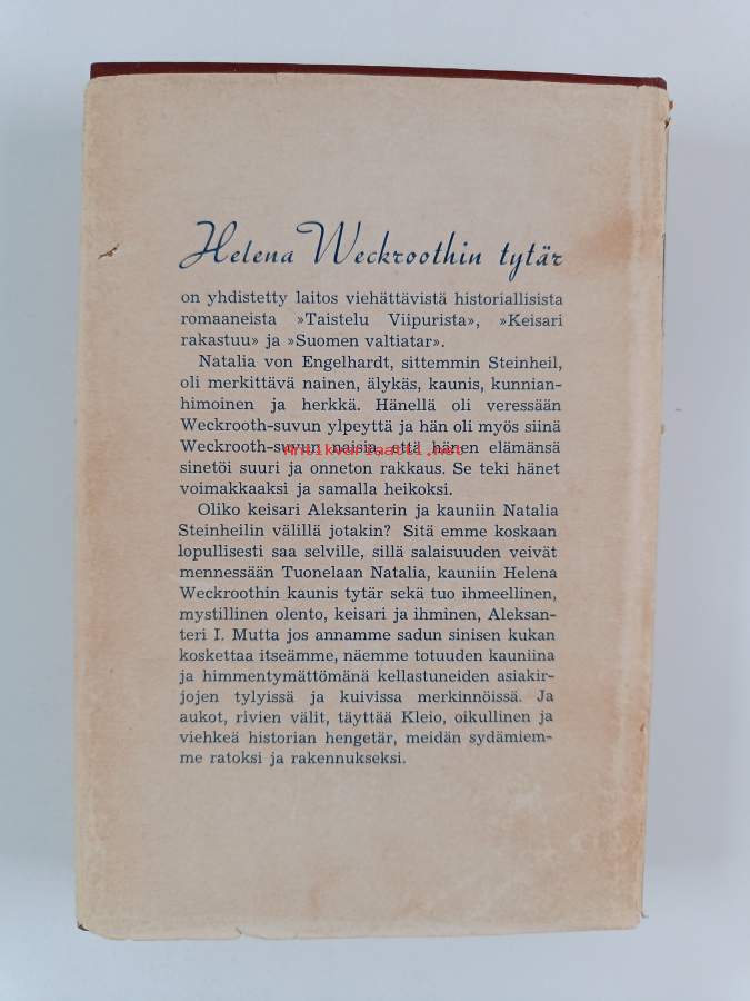 Hyvä. Hieman kulumaa kansissa, pienoista kolhua selkämyksen päissä, selkämyksessä hieman vinoutta. Kansipaperin kunto: joitain repeämiä/kulumaa & tahraisuutta / sivun kokoinen omistajamerkintä