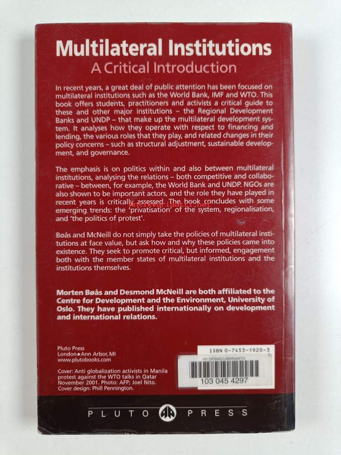 Muu(t) tekijä(t): Desmond McNeillAsiasanat: rahoitus, kansainväliset talousjärjestöt, Maailman kauppajärjestö, Maailmanpankki, hallituksiin sitoutumattomat järjestöt, Kansainvälinen valuuttarahasto, hallitusten väliset järjestöt, YK:n kehitysohjelma