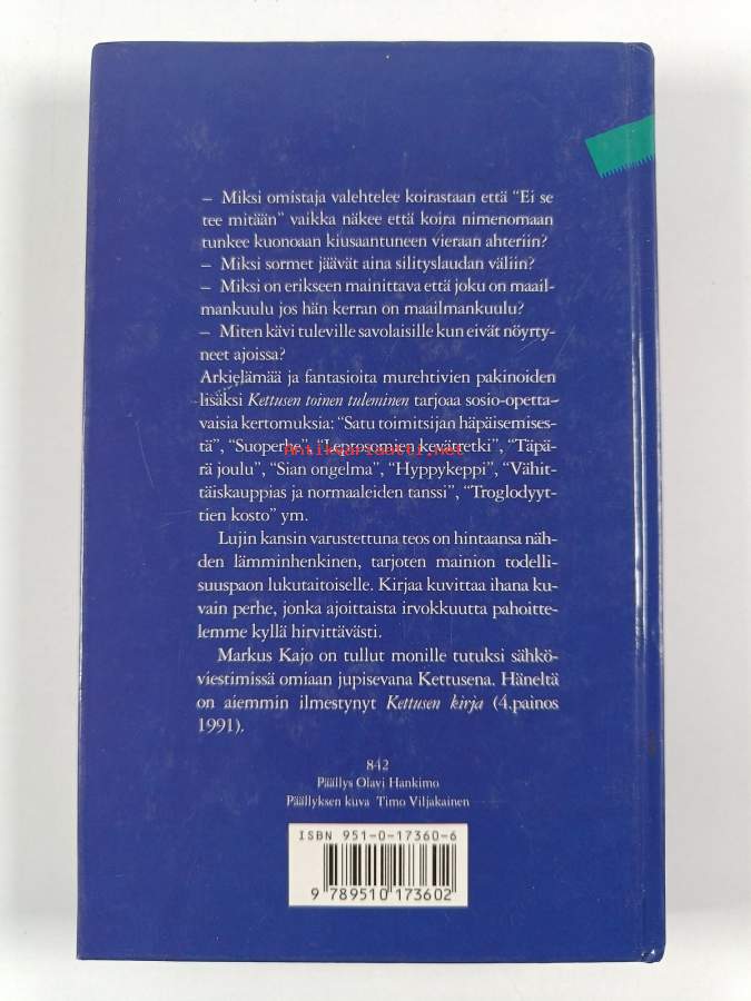 Kettusen kannettava, 2008. Kajon sanataituruus arjen ja juhlan pienistä iloista ja murheista jaksaa kantaa vuodesta toiseen. Lukija myhäilee mukana.