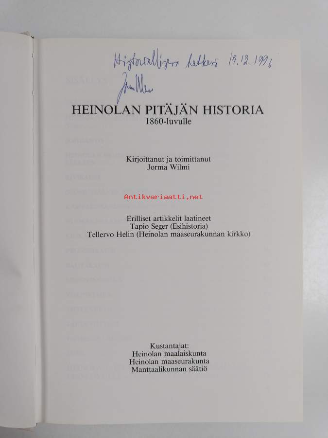 Heinolan pitäjän historia 1860-luvulle (signeerattu)