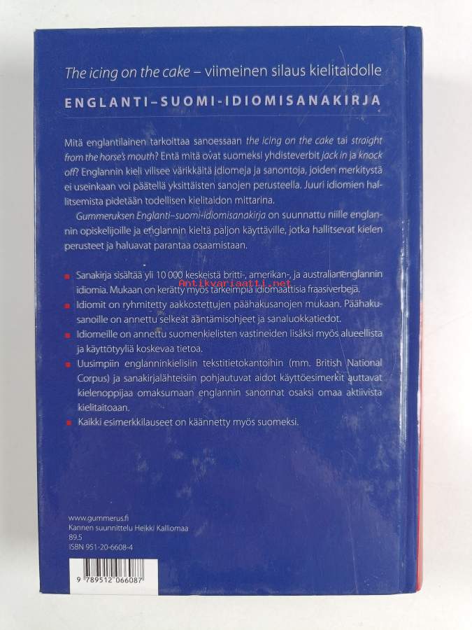 Muu(t) tekijä(t): Annamaaria LujanenSarja: Gummerus sanakirjatAsiasanat: sanakirjat, suomen kieli, englannin kieli, fraasit, idiomit
