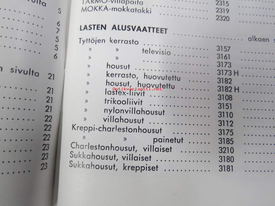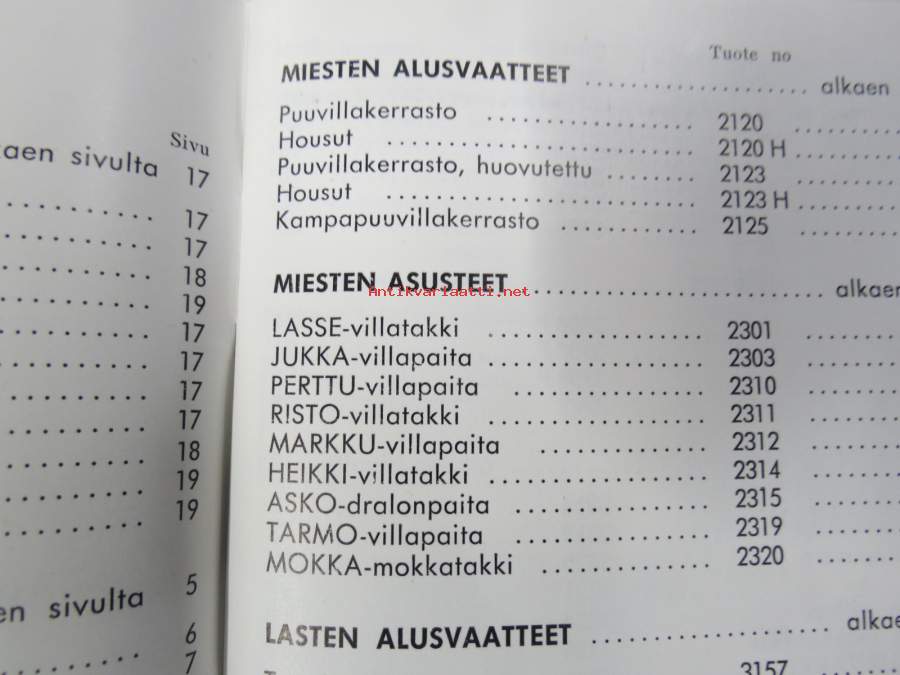 Tico syksy 1961 hinnasto - kuvitettu vaatehinnasto