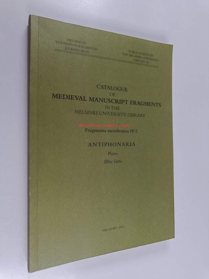 Koko nimi: Catalogue of medieval manuscript fragments in the Helsinki University Library :; fragmenta membranea, 4 - Antiphonaria 2 : Plates - Antiphonaria - Fragmenta membraneaSarja: Catalogue of medieval manuscript fragments in the Helsinki University Library : 4; fragmenta membranea; Helsingin yliopiston kirjaston julkaisuja = Publications of the Helsinki University Library 68Asiasanat: kirkkomusiikki, keskiaika, käsikirjoitukset, kokoelmat, kirjastot, liturgia, medeltiden, samlingar, bibliotek, handskrifter och manuskript, Manuscripts, liturgi, kyrkomusik, sävellyskäsikirjoitukset, notmanuskript, antifonit, antifoner