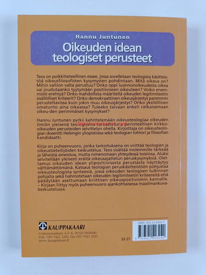 Asiasanat: demokratia, valta, yhteiskuntafilosofia, kirkko-oikeus, oikeudenmukaisuus, teologia, oikeusfilosofia, oikeusjärjestys, poliittinen filosofia
