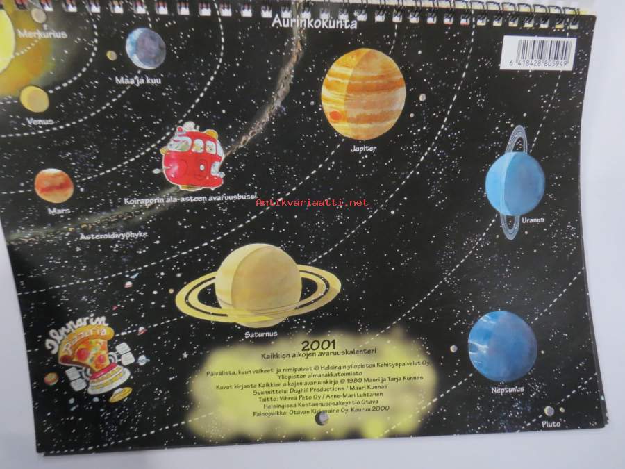 Mauri Kunnas 2001 - Kaikkien aikojen avaruusseikkailu -seinäkalenteri