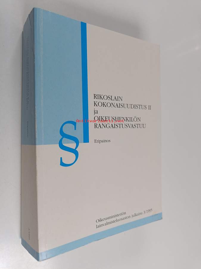 Sarja: Oikeusministeriön lainvalmisteluosaston julkaisu 1995, 3Asiasanat: lainsäädäntö, rikokset, rikosoikeus, rangaistukset
