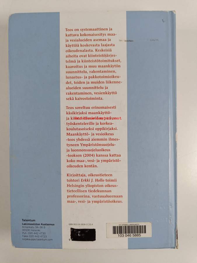 Asiasanat: rakentaminen, lainsäädäntö, ohjausjärjestelmät, kiinteistöt, kaavoitus, maaoikeus, vesioikeus, maanomistus, vesirakennus, maankäyttö, sääntely, vesiväylät, kaivokset, maankäytön suunnittelu, liikennealueet, rakentamisoikeus, kiinteistönmuodostamisoikeus, kaivostoiminta, vesitalous, luvat, lunastusoikeus, kiinteistötoimitus, vesistöjärjestelyt, vesialueet, vesienhoito, lunastus, etuosto-oikeus, pakkotoimet, kiinteistöjärjestelmät