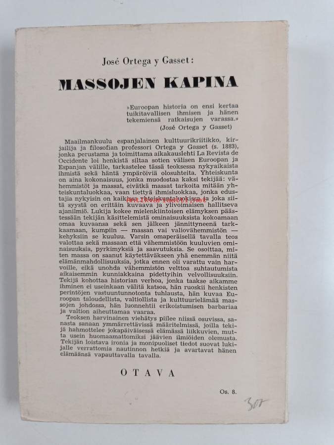 Muu(t) tekijä(t): Sinikka Kallio-VisapääSarja: Kompassi-kirjatAlkuteos: La rebelion de las masasAsiasanat: yhteiskuntafilosofia, sosiologia