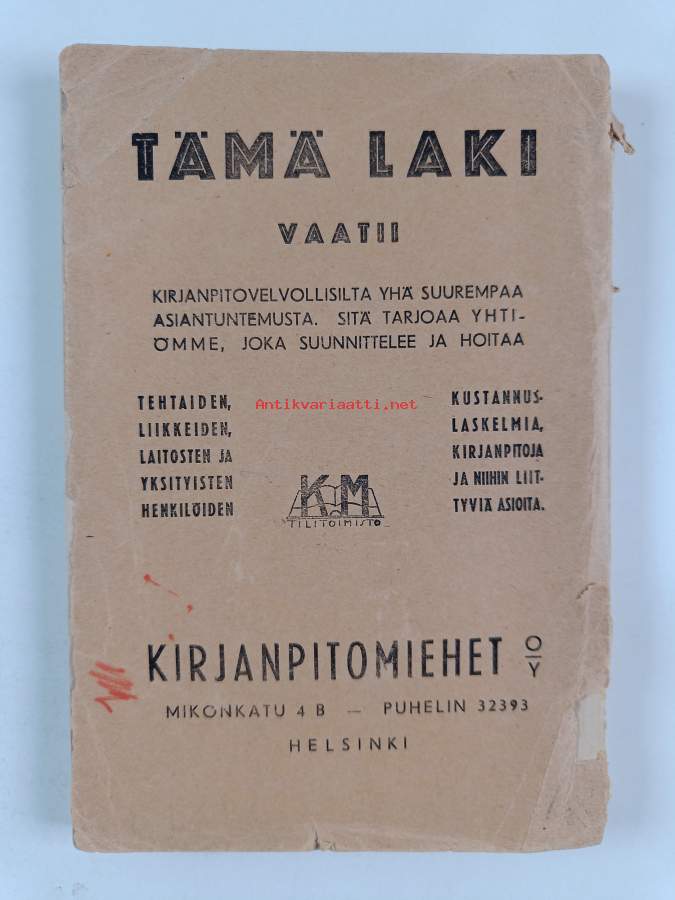 Huonokuntoinen (lukukelpoinen). Jonkin verran repeämää reunoilla, pienoista tahraisuutta kansissa, sivuilla merkintöjä, sidos löystynyt ja näkyvissä. selkämys revennyt melkein kokonaan