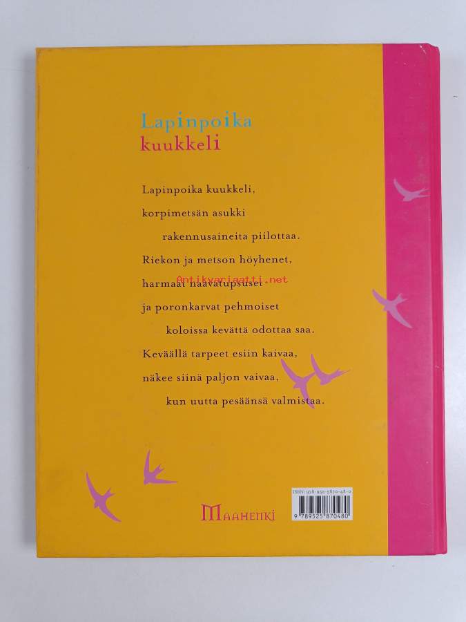 Muu(t) tekijä(t): Benjam (valokuvat) PöntinenAsiasanat: kuvateokset, lastenkirjallisuus, runot, luonnonvalokuvaus, lorut