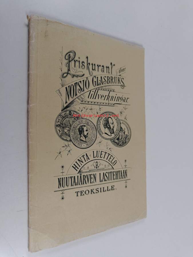 Hinta-luettelo Nuutajärven lasitehtaan teoksille. Priskurant öfver Notsjö glasbruks tillverkninqar