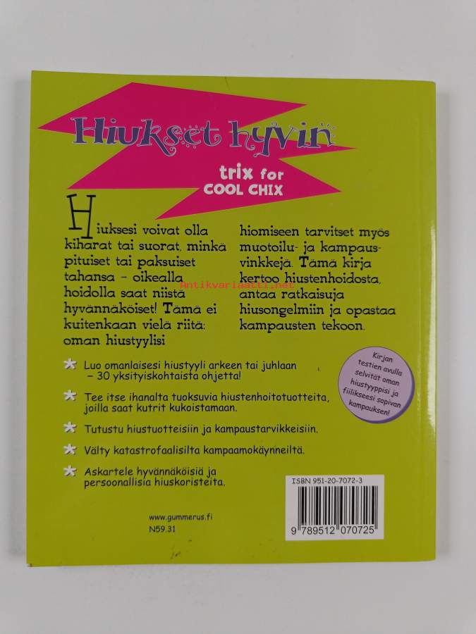 Muu(t) tekijä(t): Auri Paajanen, Salla TschokkinenSarja: Trix for cool chixAlkuteos: Hair trix for cool chixAsiasanat: hiukset, hiustenhoito, kampaukset, tyylit