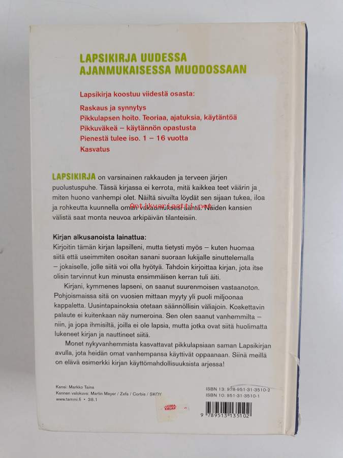 Muu(t) tekijä(t): Pirkko Talvio-Jaatinen, Jelena Vallenius ym.Merkinnät: omistajamerkintäAlkuteos: Nya barnabokenAsiasanat: nuoret, vastasyntyneet, lastenhoito, vauvat, lapset, raskaus, synnytys, lasten kehitys, ikäkaudet, esikouluikäiset, kasvatusoppaat, murrosikäiset, leikki-ikäiset, lapsipsykologia, kouluikäiset, kasvatuspsykologia, ikäryhmät
