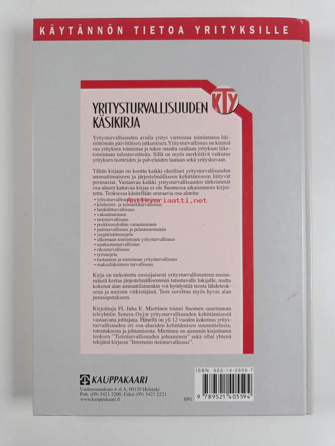 Sarja: Käytännön tietoa yrityksilleAsiasanat: maanpuolustus, yritykset, yritystoiminta, matkailu, johtaminen, turvallisuuspolitiikka, ympäristönsuojelu, kiinteistöt, turvallisuus, rikokset, rikollisuus, paloturvallisuus, vakuutusala, pelastuspalvelu, riskit, tietoturva, henkilöstö, työturvallisuus, työsuojelu, tietojärjestelmät, riskienhallinta, kiinteistöala, tuotevastuu, laatujohtaminen, vakuutus, suojaus, pelastustoimi, turva-ala, rikoksentorjunta, maksuliikenne, pelastustoiminta, toimitilat
