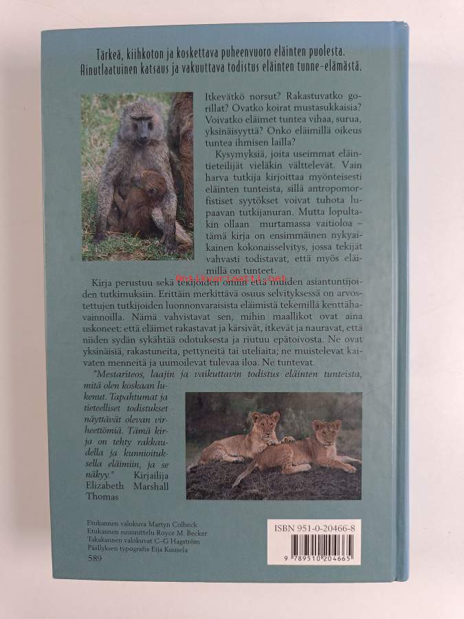 Muu(t) tekijä(t): Tiina Ohinmaa, Susan McCarthyAlkuteos: When elephants weepAsiasanat: eläimet, tunteet, tunne-elämä, eläimet käyttäytyminen