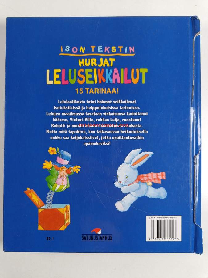 Muu(t) tekijä(t): Hannu Tervaharju, Gill GuileAlkuteos: 15 toybox talesAsiasanat: sadut, lastenkirjallisuus, leikkikalut, kuvakirjat, isotekstiset kirjat, helppolukuiset kirjat