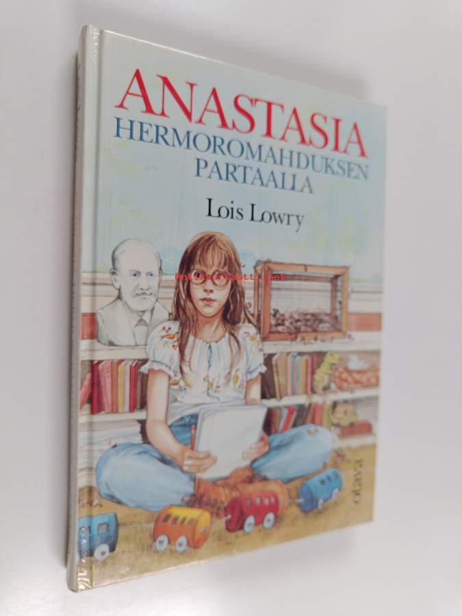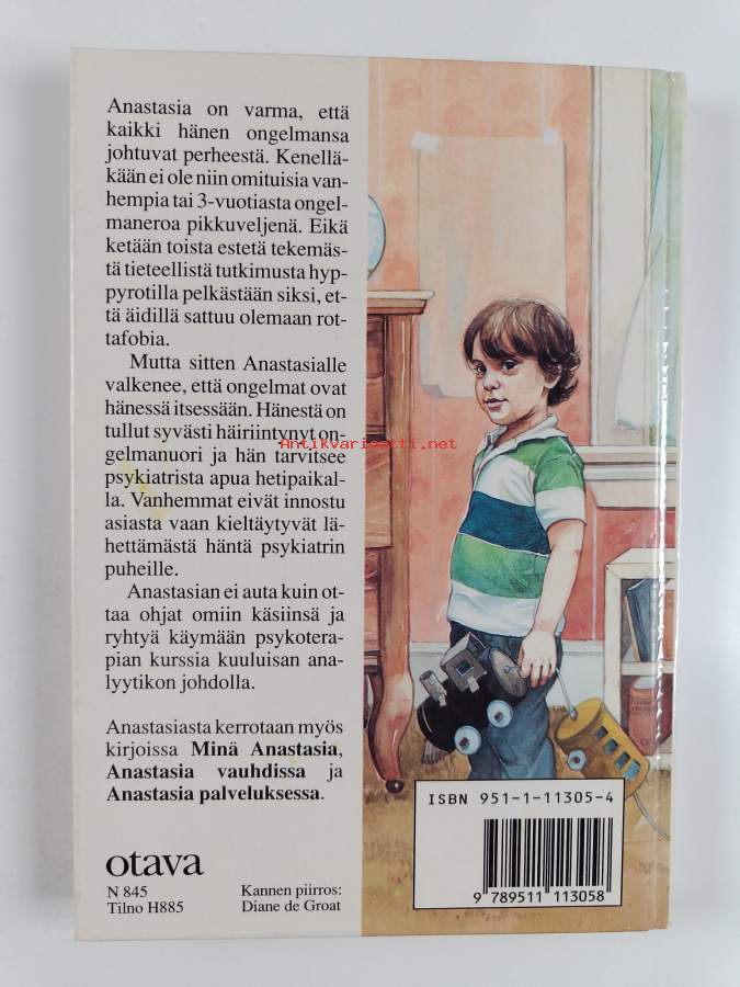 Anastasia Romanov, nimikirjoituskortti. Nimikirjoitus on painettu 1900-luvun postikorttipaperille, ei siis käsinkirjoitettu. Kortin koko noin 7,5 cm x 12,5 cm.