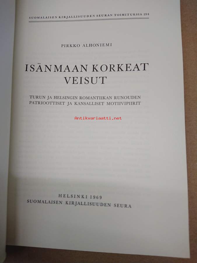 Alhoniemi, Pirkko.Isänmaan korkeat veisut : Turun ja Helsingin romantiikan runouden patrioottiset ja kansalliset motiivipiirit