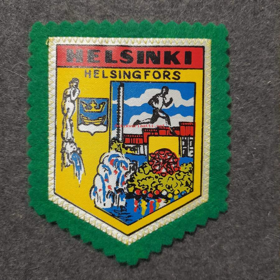 Helsinki -kangasmerkki / matkailumerkki / hihamerkki / badge pohjaväri vihreä
