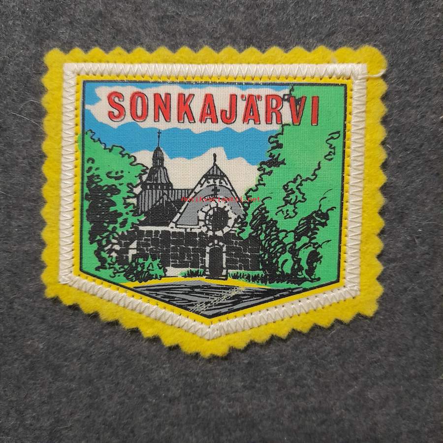 Sonkajärvi -kangasmerkki / matkailumerkki / hihamerkki / badge pohjaväri keltainen