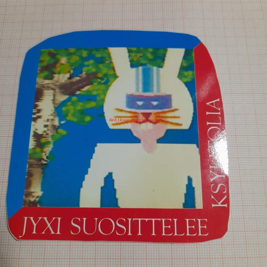 Tarra 1:xylito jenkki, tarra 2: Peppi Pupu. Invaliidiliiton kirjeen sulkija merkkejä 3 kpl, pupu varoittelee vaaran paikasta