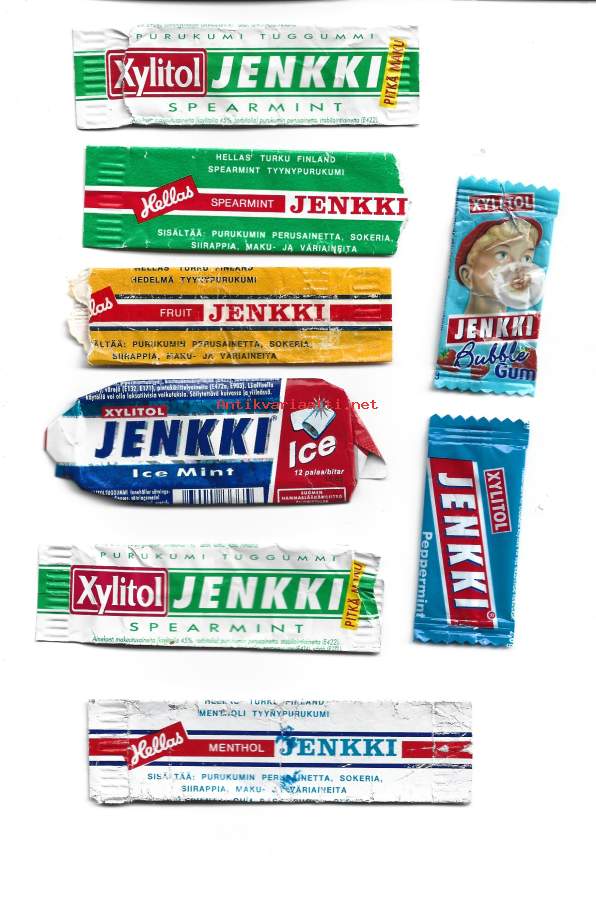 Jenkki Purukumityhjä tuotapakkaus purkkakääre makeiskääre 8 kpl erä