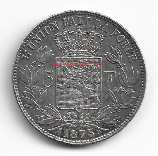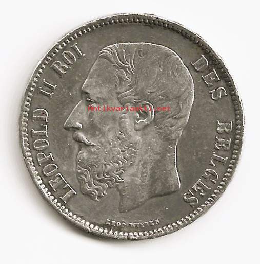 Belgia 5 Fr 1873 hopeaa 25 g 0.900