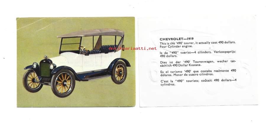 Chervolet 1919 - kohopaino kiiltokuva, keräilykuva 6x8 cm tekniset tiedot takana