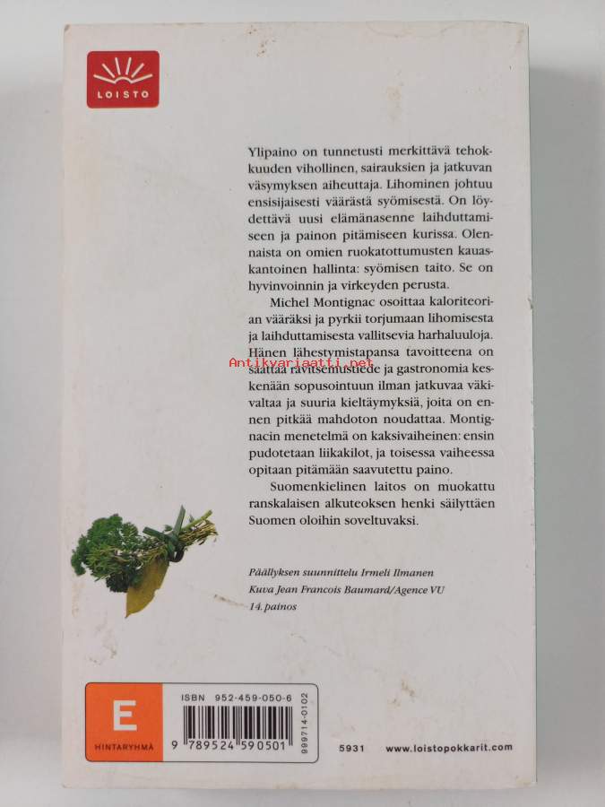 Alkuteos: Je mange donc je maigris!Asiasanat: ruokavaliot, laihdutus, Montignacin dieetti