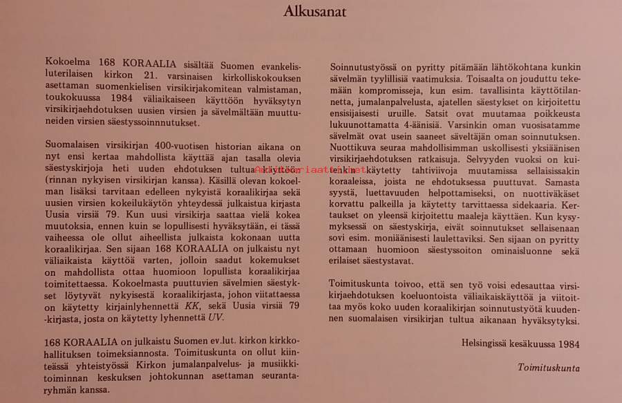 168 koraalia : väliaikainen koraalikirja vuoden 1984 virsikirjaehdotukseen
