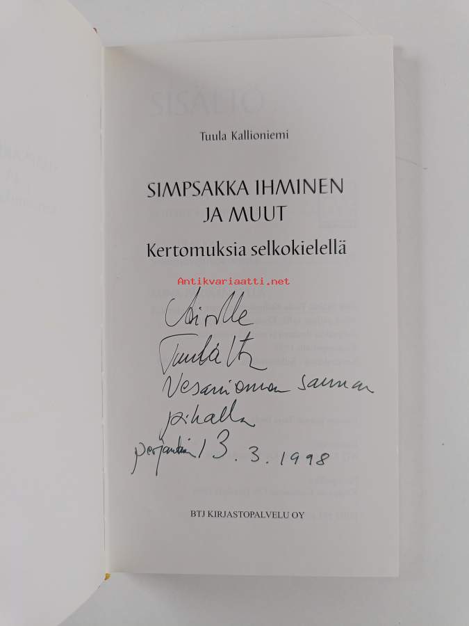 Simpsakka ihminen ja muut : kertomuksia selkokielellä - Kevätrakkaus - Minä pärjään kyllä (signeerattu, tekijän omiste)