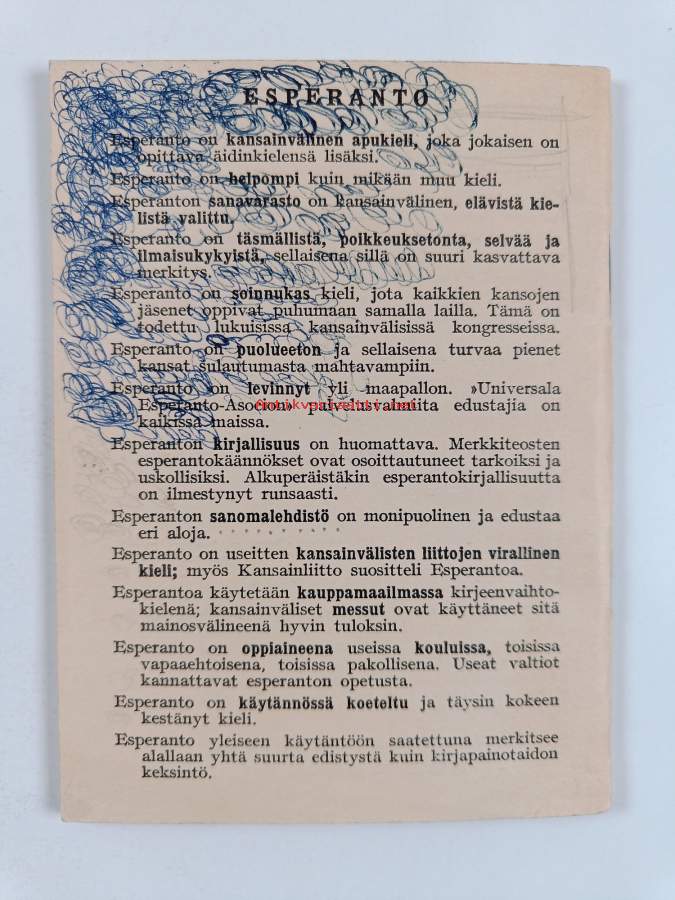 Suomi-esperanto sanakirja PLENA VORTARO DE ESPERANTO - TRIA ELDONO, SENNACIECA ASOCIO TUTMONDA, 1947