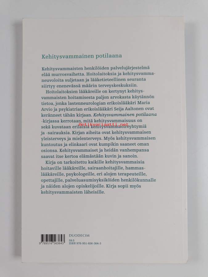 Muu(t) tekijä(t): Seija AaltonenAsiasanat: diagnostiikka, mielenterveys, terveys, mielenterveyshäiriöt, terveydenhoito, psykoterapia, kehitysvammaiset, elämänkaari, kuntoutus, persoonallisuushäiriöt, epilepsia, hermoston taudit, muistisairaudet, kehityshäiriöt, mielenterveyspalvelut, ruoansulatuselinten taudit, oireyhtymät, kehitysvammaisuus, sairaudet, osteoporoosi, kehitysvammat, geneettiset tekijät