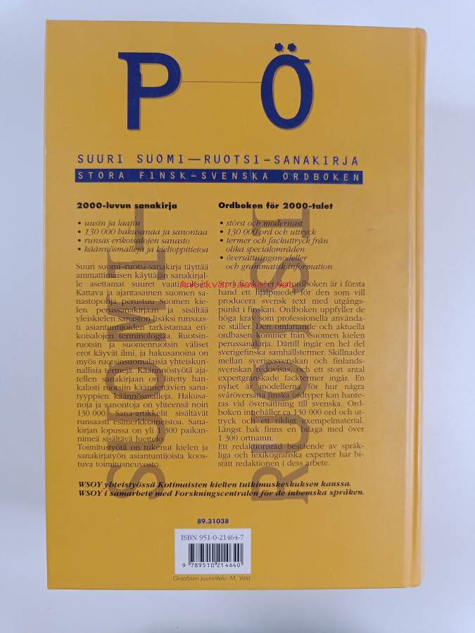 Muu(t) tekijä(t): Ilse Cantell, Birgitta Romppanen ym.Sarja: Suuri suomi-ruotsi-sanakirja Toinen osa = Andra delen; Stora finsk-svenska ordboken