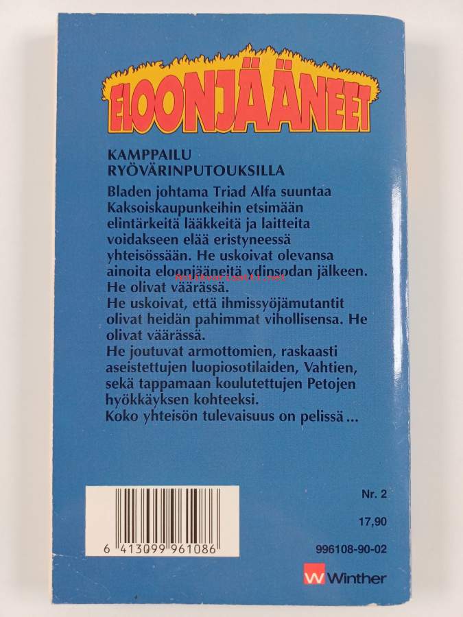 Hyvä. Hieman kulumaa kansissa, hieman kolhua kansissa, aivan pienoista repeämää kansissa, selkämyksessä hieman vinoutta, selkämyksessä lukutaittumaa, edessä vanha hintalappu