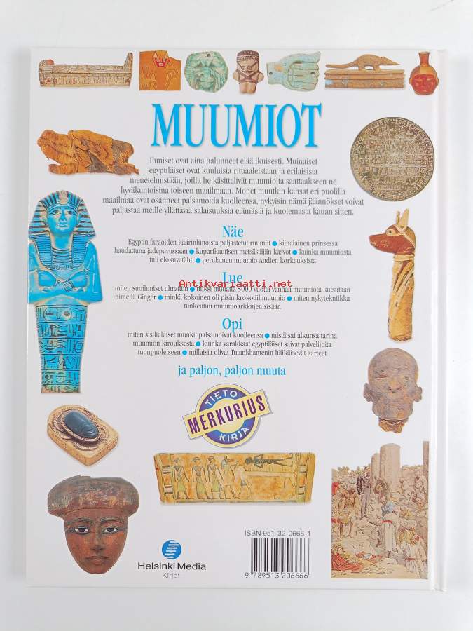 Muu(t) tekijä(t): Meme Saukko, Peter HaymanSarja: Merkurius-tietokirjaAlkuteos: MummyAsiasanat: muinaisjäännökset, Egypti, muinaishaudat, palsamointi, muumiot
